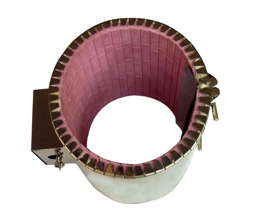 陶瓷電加熱圈采用的不是一般云母撓線方式制作,而是采用陶瓷條穿絲方式,因此該產品的功率比普通的要高0.5~1.5倍。發熱體為進口圓絲陶撓成彈簧狀穿入陶瓷條圈成,外罩采用日本產不銹鋼,中間采用高溫隔熱保溫棉(硅酸鋁纖維板)防止溫度外泄。陶瓷條是高頻陶瓷具有傳熱快、堅硬不易碎、高溫不變形不易老化等優點。