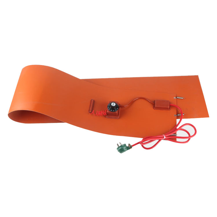 油桶加熱帶采用硅膠加熱板的柔軟特性、可彎曲特性,在加熱板的兩邊 預留孔位鉚上金屬扣,用彈簧扣在桶體、管道、罐體上。安裝方便、快捷。可使硅橡膠加熱板利用彈簧的拉力緊貼在被加熱部位,加熱迅速,熱效率高。油桶加熱帶通過加熱使桶內的液體、凝固物容易取出,如桶內的粘接劑、油脂、柏油、油漆、石蠟、油和各種樹脂原料,通過桶體加熱,使其粘度下降均勻,減輕泵的功力.因此,此裝置不受季節影響可常年使用。油桶加熱帶表面安裝傳感器,通過溫度調節直接控制溫度。