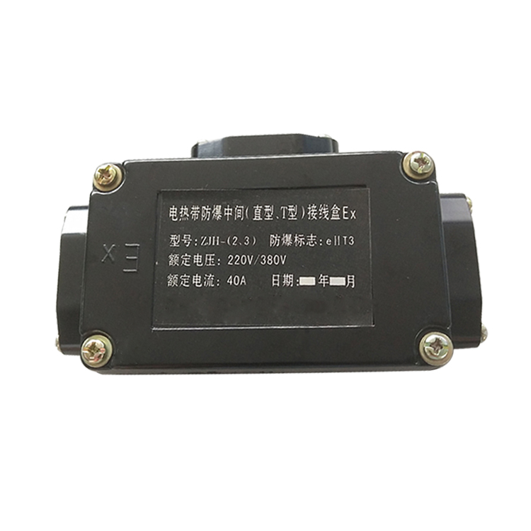 用于防爆區域電伴熱帶與電伴熱帶的連接,增加電伴熱帶的長度或用在同一管線上配用不同功率的電伴熱帶及三叉管線等較復雜的場合。其外殼為高強度塑料(DMC或膠木材質)。 與電伴熱帶配套后適用于工廠一區、二區爆炸性氣體T3、T4組場所使用。